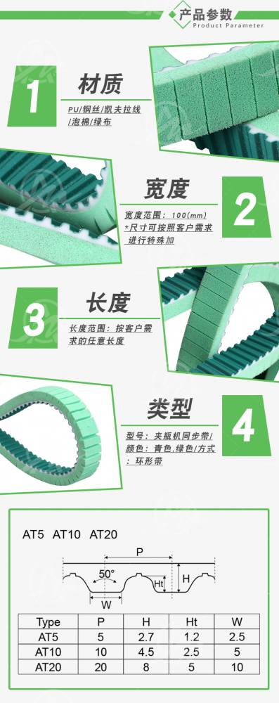 产品特点:耐磨损,抗拉力强,齿面加绿布,背面加泡棉。